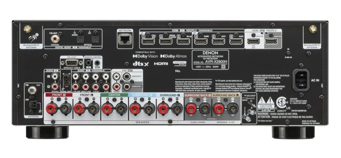 Receptor de cine en casa de 7.2 canales Dolby Atmos, 8k, Wi-Fi, HEOS, Spotify, Tidal, AirPlay 2, Bluetooth.