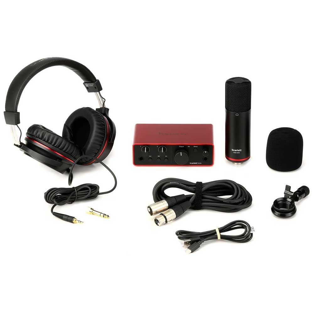 El Solo Studio 4ta Gen es el pack ideal para comenzar a grabar con calidad de estudio desde el primer día. Este paquete incluye la interfaz Scarlett Solo 4ta Gen, el micrófono de condensador CM25 MkIII, los audífonos profesionales SH-450 y un cable XLR de 3 metros, con todo lo necesario para grabar música, podcasts o contenidos al instante.